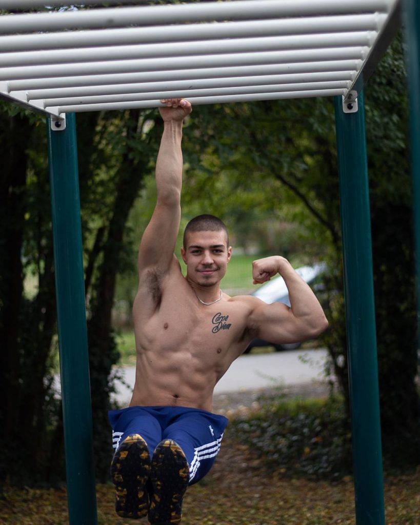 I found those movements very skillful, joyful and very cool when you are outside and recording yourself so I really like calisthenics exercises and calisthenics training. First because it looks very cool and second because you can do it anywhere. Even when I’m on vacation, I always do some type of calisthenics training. It’s usually an easier training session but I can still do it and I prefer it more than gym training because as I said you can do it everywhere and it looks very skillful and that’s why it motivates me to keep going. When I’m somewhere and people don’t really know what calisthenics is because it’s not so famous, I can always show off  some very exciting and cool moves to them.