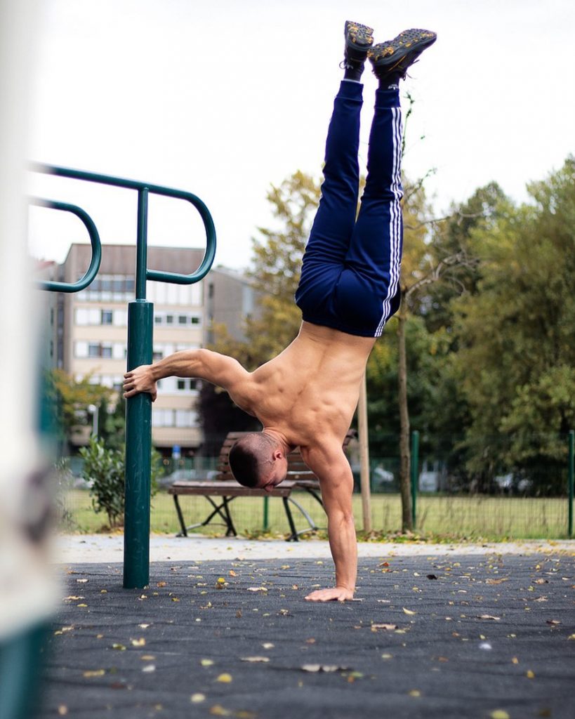 I was in gym training for a couple of months and then I realized I don’t find it so enjoyable. I really like the elements of calisthenics and it looks very cool and you’re able to do it anywhere. That’s what I like the most about it. I also like training in fresh air, that’s another benefit. And I discovered that for me once I learn my hand stand and first muscle up, then i really discovered that I’m really enjoying the difference of all those exercises and then I realized that there’s so much stuff I can learn and progress throughout my calisthenics journey and I also liked that I find it more challenging than the weights because in calisthenics you have to change up the progressions and variations of the exercises and in gym or weight training, it’s just add more weight and I found this much more challenging and enjoyable in that sense.