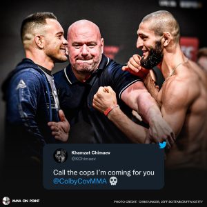 When it comes down to the media scrums and pre-fight conferences, Colby is the King of the UFC only behind Conor McGregor’s mental tactics. Khamzat may easily be influenced and coaxed into an unsanctioned fight.