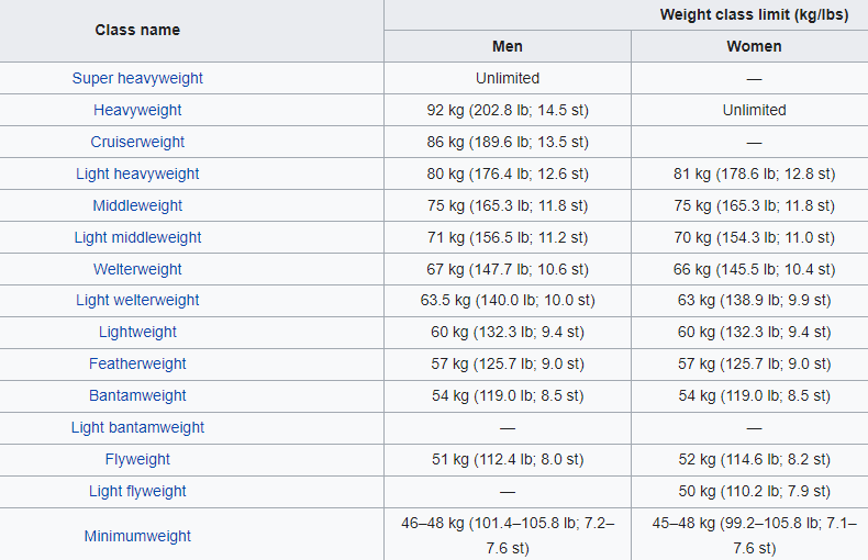 Boxing Weight Divisions