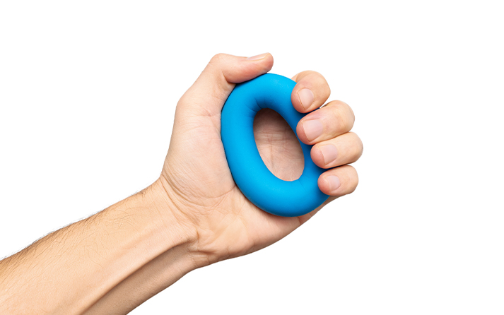 - Finger squeezes: Use a stress ball or gripper. Squeeze and hold.
