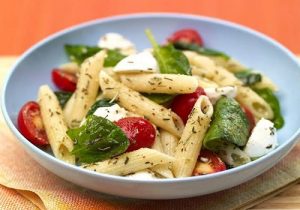 Carbohydrates are crucial for your brain and muscles. This pasta salad is a rich protein meal you can have to boost your stamina. Served with grounded spinach, it is a complete package with all the required nutrients for your body.