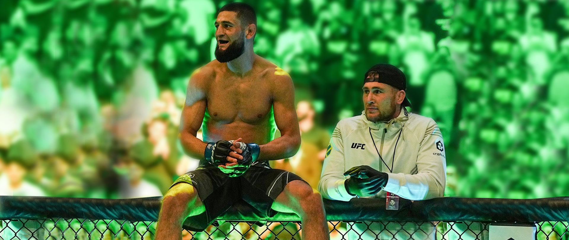 Round 3 started with some early leg kicks and distance from Gilbert’s side though the unrelenting pressure from Khamzat hadn’t run its course.