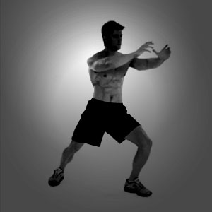 Stand feet shoulder width apart in front of wall so that you can grab the wall if you need to. Get into a fighting stance, arms extended in front of you, as if holding the opponent from the back of the head. Now slowly draw your arms back across your chest, bringing forward your hind leg raising the knee as if you were to strike the opponent’s head. Keep your knee raised for three seconds and then switch side.