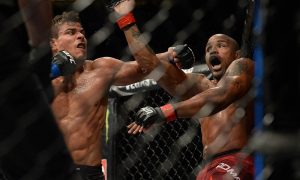 Costa, maintaining his usual style: smart pressure. The middle weight Brazilian fighter kept his guard advanced and head high, not giving Romero any chance to grab any opportunity, picking them all himself and slamming home kicks to the mid section at the right time. Costa’s body work this time was very impressive and accurate for the fight.