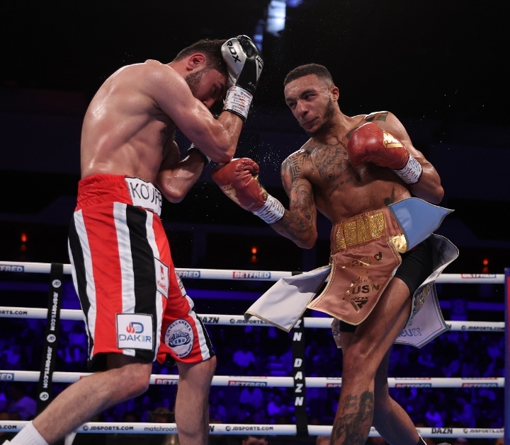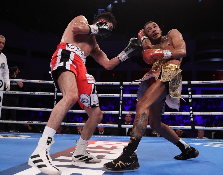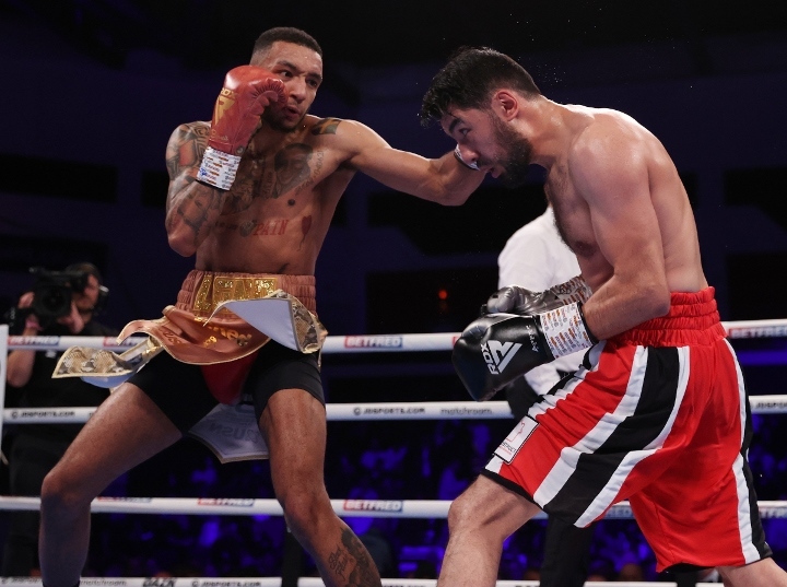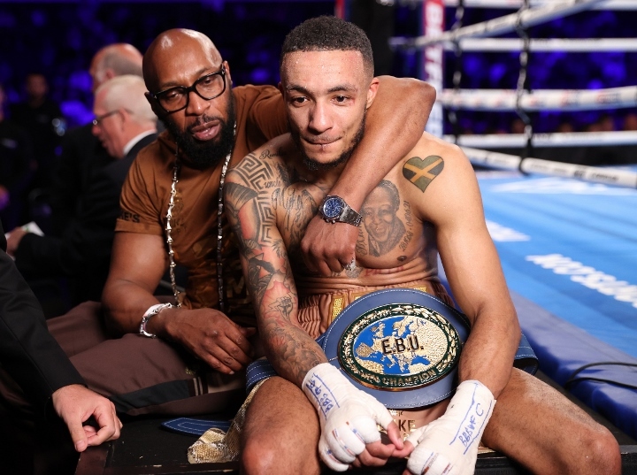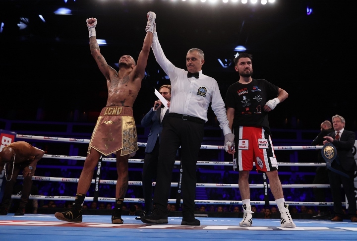 While leaning on the ropes and conversing with the commentary booth for a ringside interview, he was joined by his coach Pat Barrett and Chairman Eddie Hearn. Soon after the judges’ scorecards for all 12 rounds were revealed, the match was scored 120-108, 119-109, 118-110 in favor of Zelfa “the Brown Flash” Barrett.